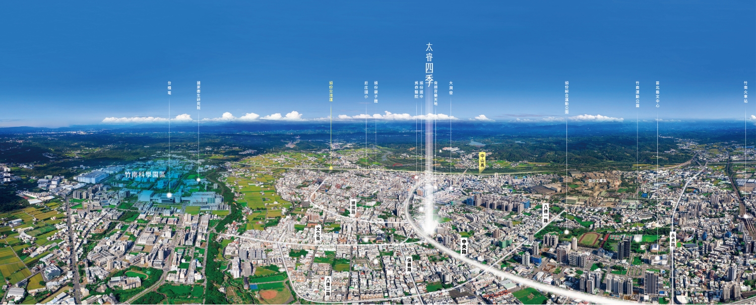 6兆元產值桃竹苗大矽谷計劃,預告一場關於未來的悸動; 一條黃金產業走廊,為城市注入源源不絕的能量!正50米中央路, 彷如一條被晨光照耀的榮脈,點亮家的故事與未來的高度, 【太睿四季】於此立築,開始萌生新幸福!